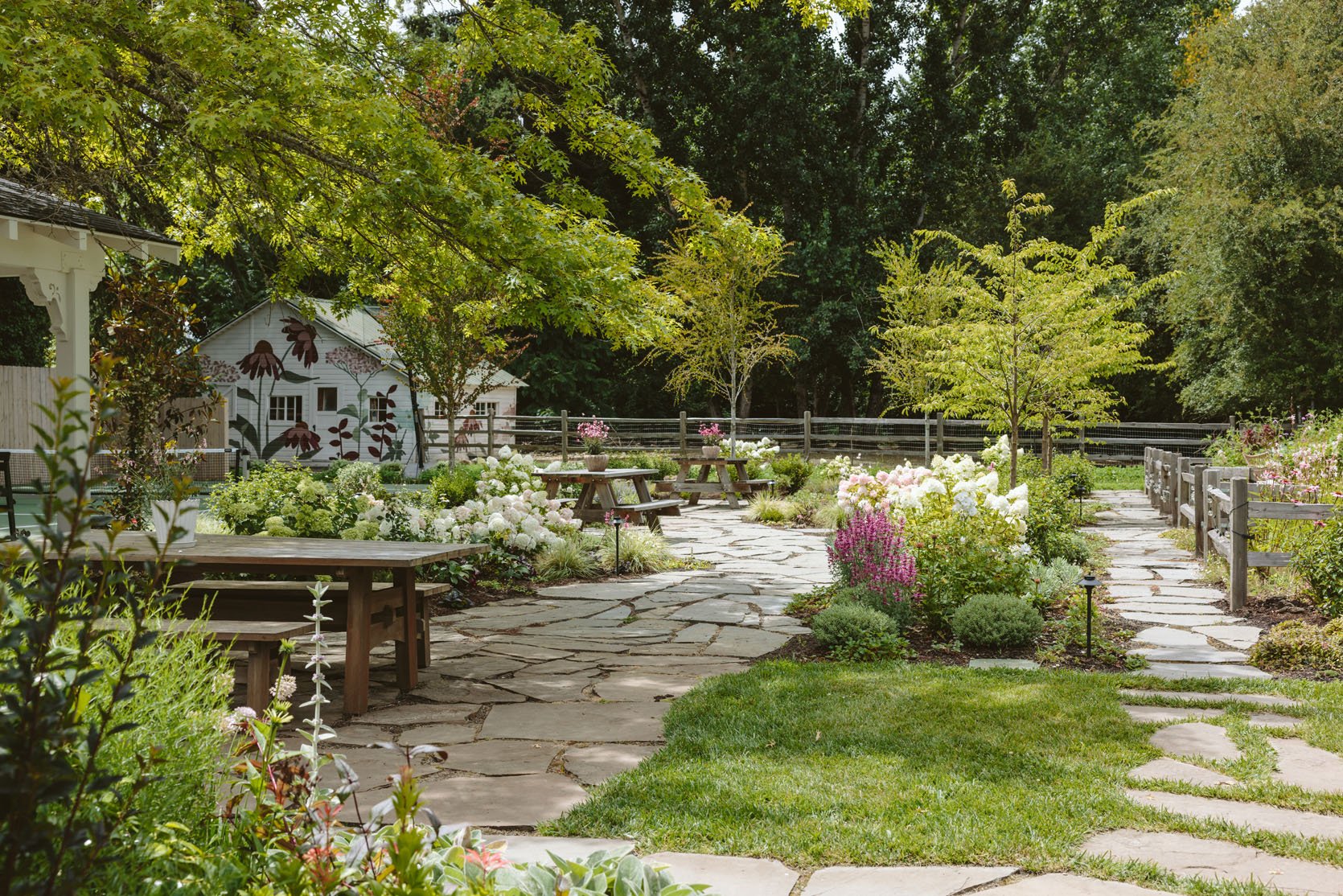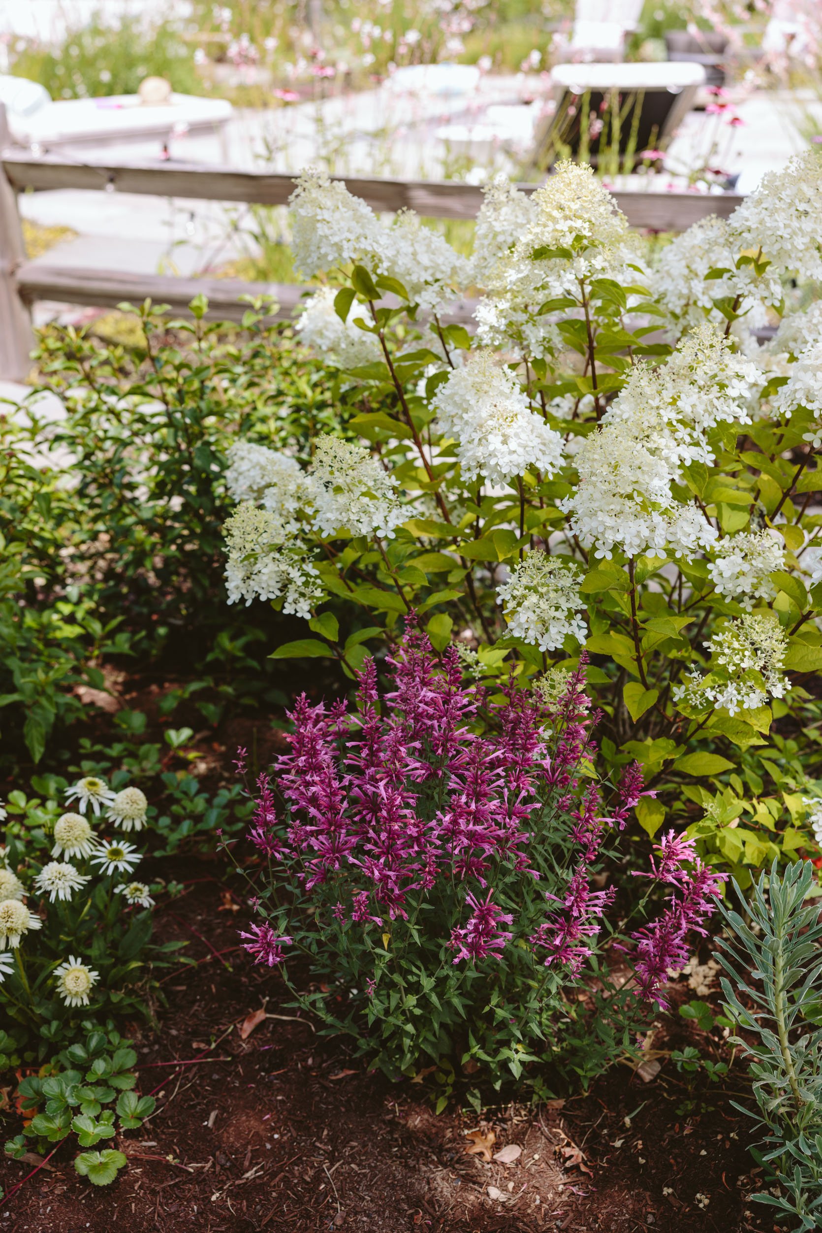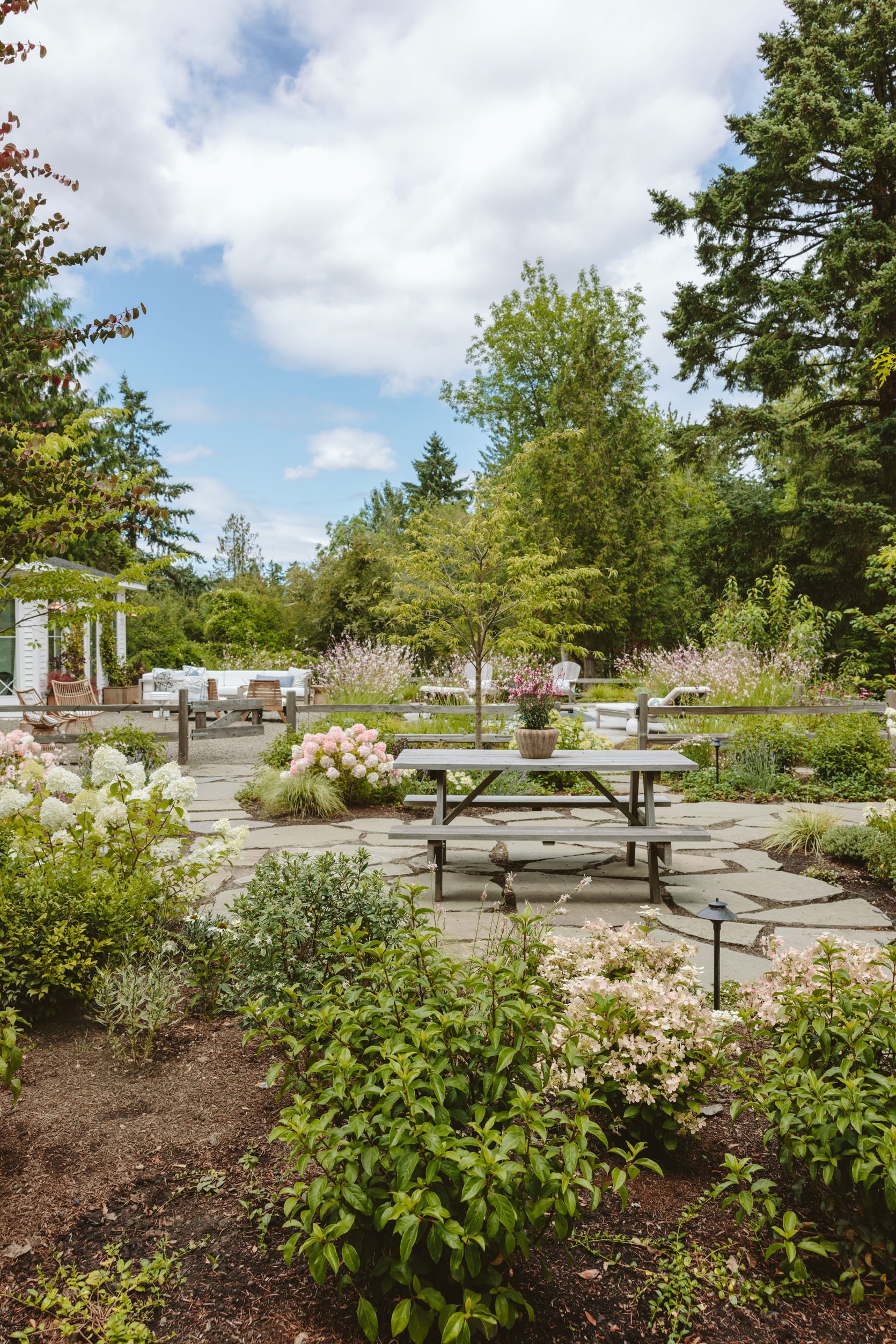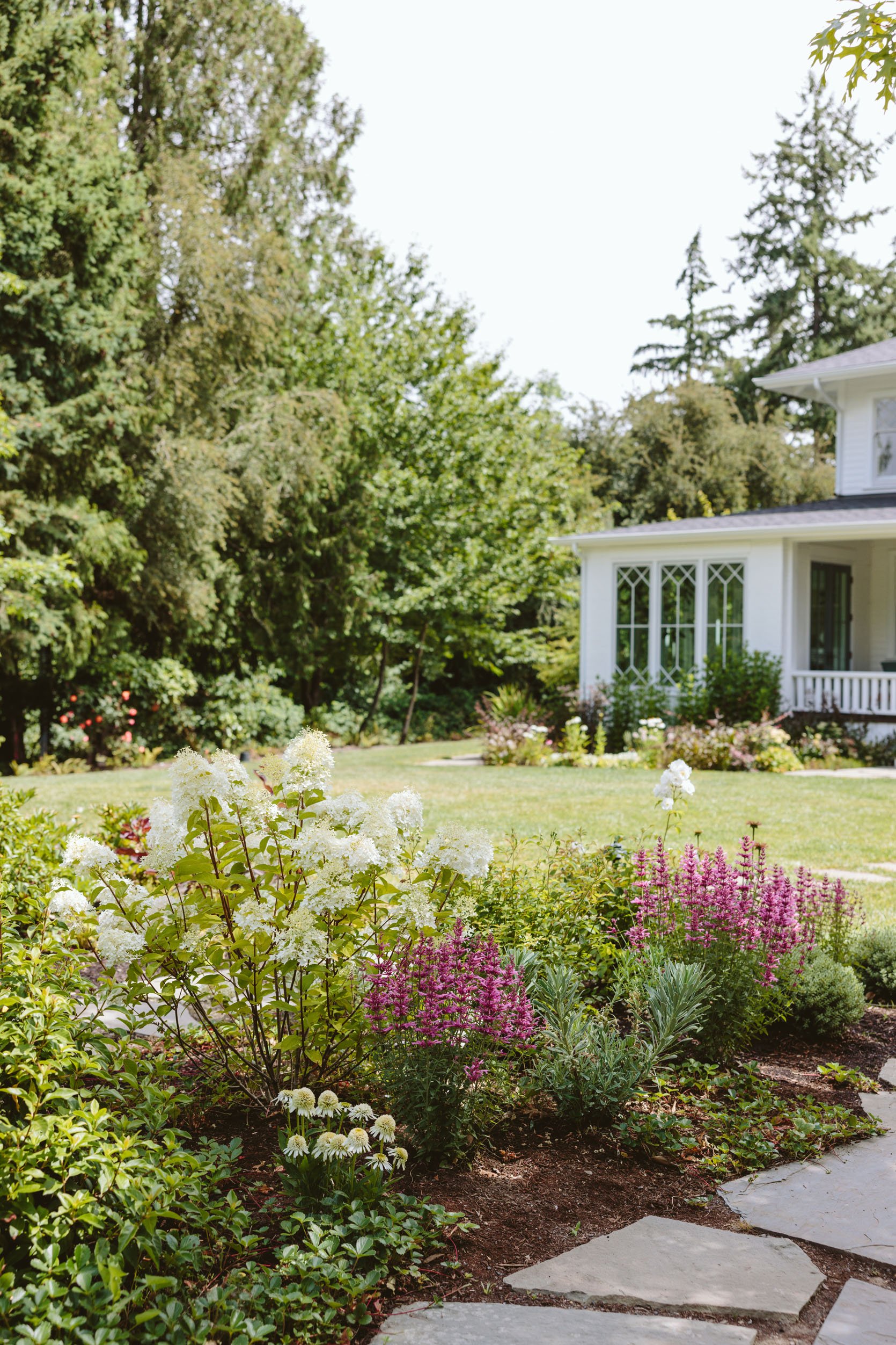 It’s incredibly beautiful. The panicle hydrangeas are incredible – all from their garden centers (Monrovia has very healthy, high-quality plants that are locally grown, which helps), and the layering, textures, and colors feel so natural but not messy.