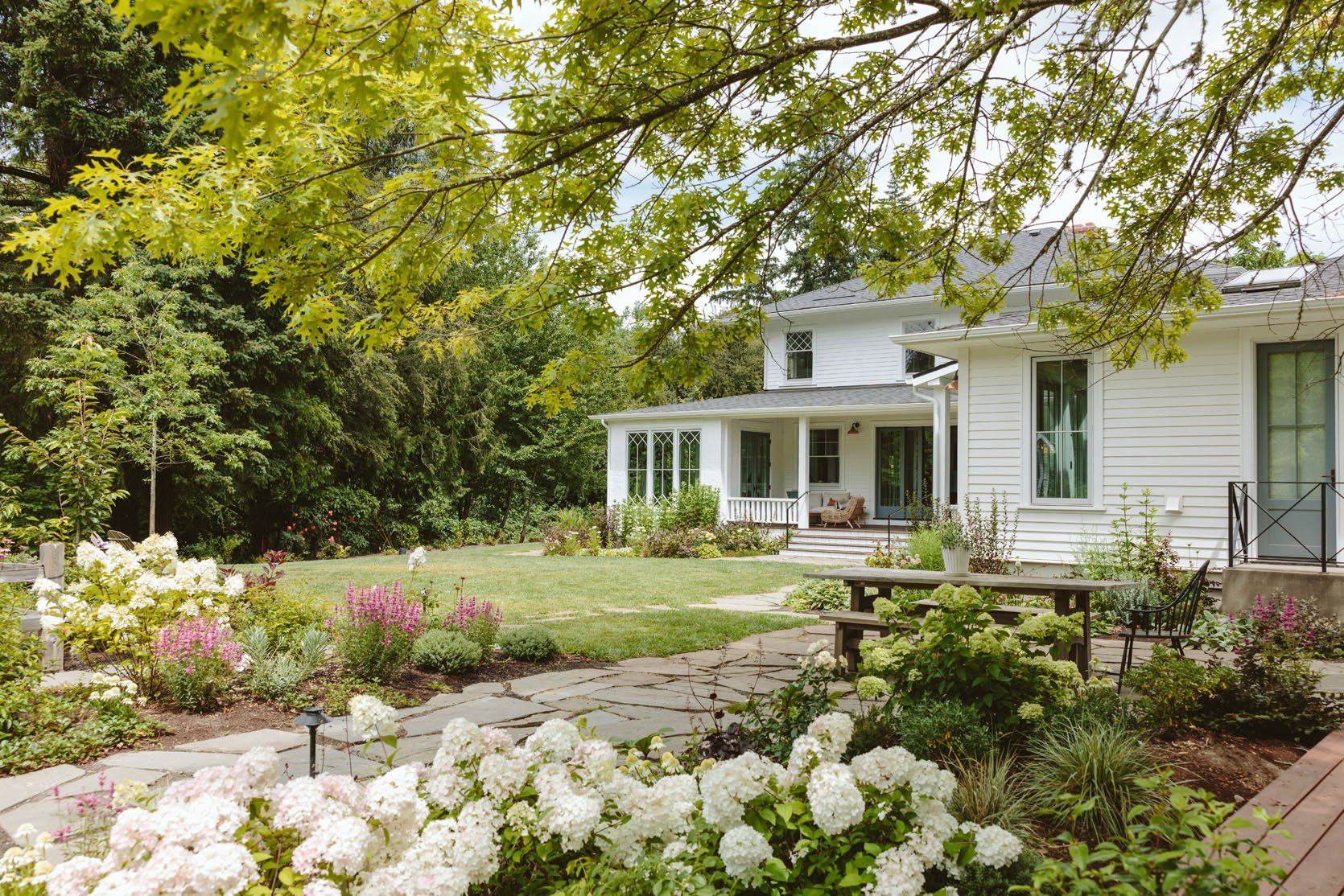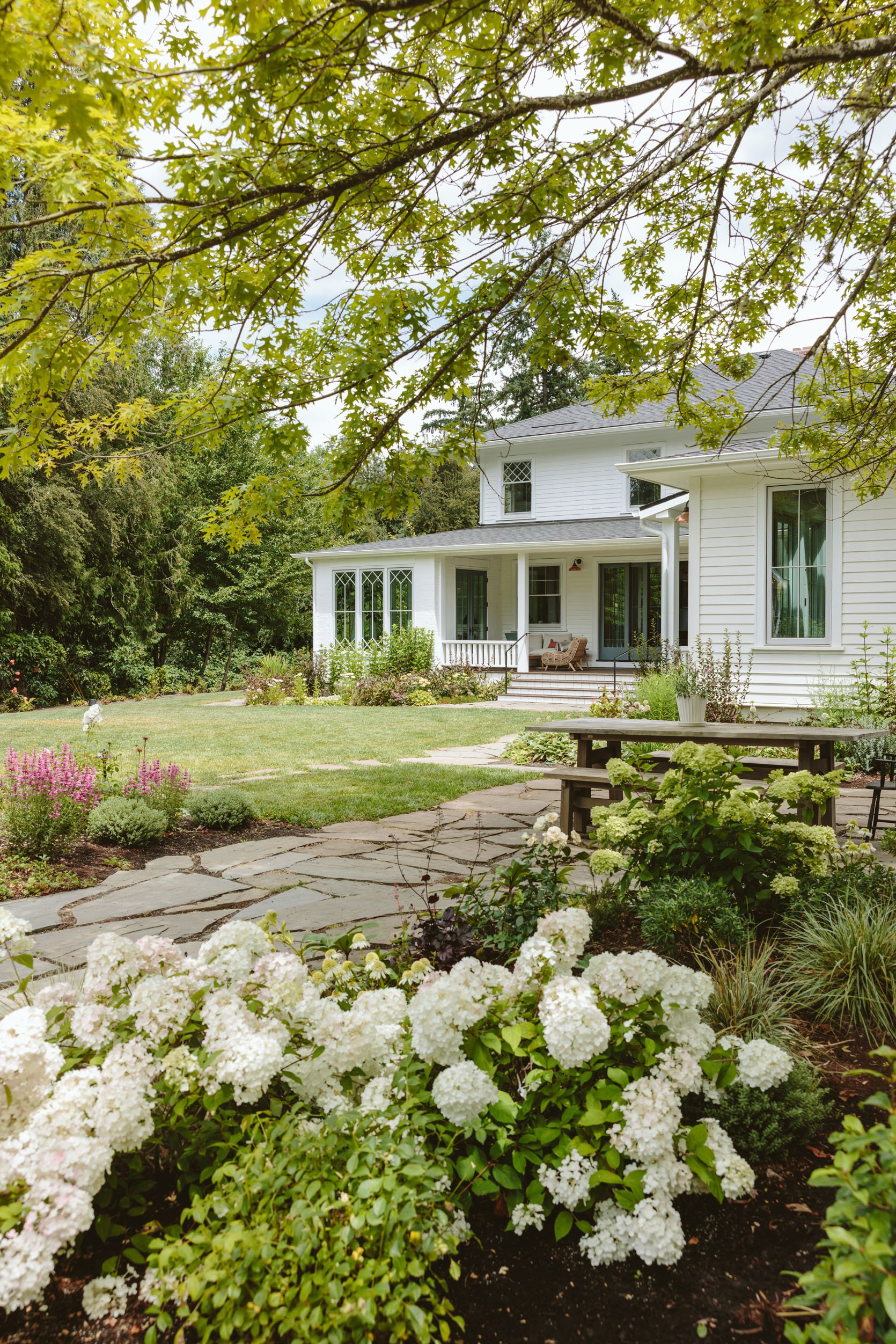 Here was the palette they had planned, which I was in love with and all came from their garden centers (which have an incredibly robust selection). While in the past I have been picky with plants, needing to love each one and feel like stylistically it was “me,” this time around I shifted my mentality. My goal was to have a cohesive color palette, sure, (no random pops that didn’t make sense), but otherwise all I wanted was for the experts to choose things that really thrived easily here, in Oregon, under our conditions. I didn’t want to make suggestions that would override the expertise. For instance, I never thought that I, Emily Henderson, would choose hydrangeas (I had wrong judgements about them, ok?), but as you can see below – they are all over our yard and so beautiful. I am a full hydrangea girly now!! I really, really trusted Eric that they would plant plants that loved living in Oregon and would be easy to manage/tend to and beautiful year-round. They understood that we like a less manicured look, less structure, lots of levels and layers (I said no to orange, sorry, and nothing oddly tropical or like red roses). I really let them do their job because everything they showed me was so aligned with what we wanted. We were speaking the same language, which is really what you want from any designer.