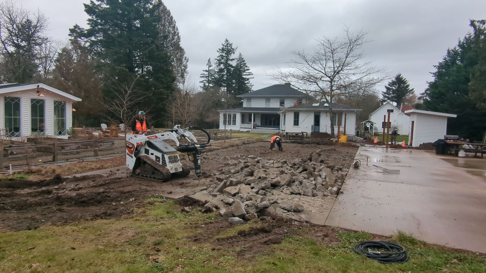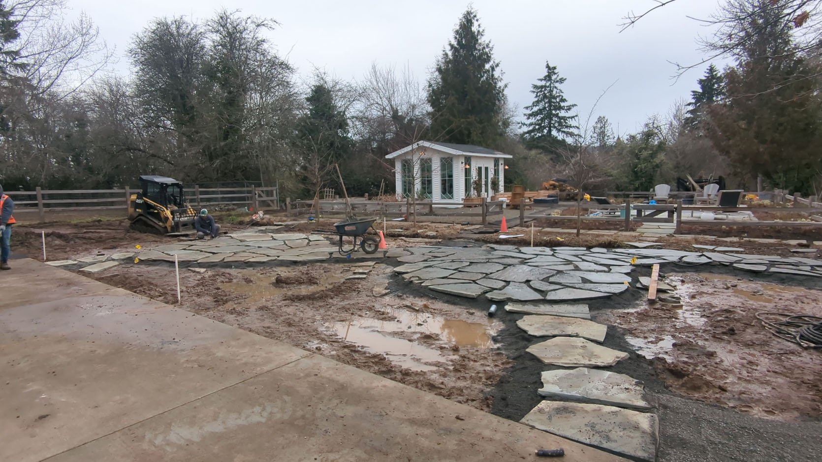 Now, if you haven’t done flagstone before, know that this is a massive investment (ours cost over $20k). We could have used pea gravel, but it’s a lot messier and we wanted it to be cohesive with the rest of the walkway around the house. In Oregon, due to the rain, you really want solid hardscape to walk – you can’t use DG like you can in CA. So this was a massive investment and something we knew we needed the experts to execute.