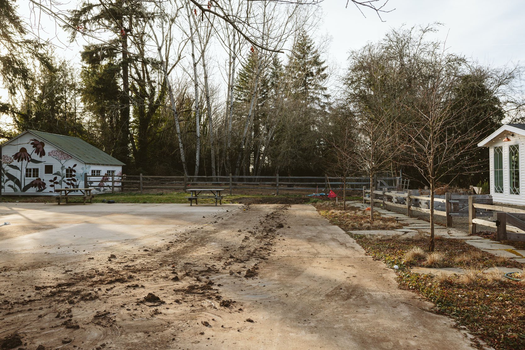 Of course, there are more “before befores” from 2019 (when we bought the property) and 2021 (aka the year of the mud before phase 1 began). But this was in January 2025, which is always a sad time of year (and before we had proper maintenance because we thought we could handle it, so the leaves were clearly a problem).
