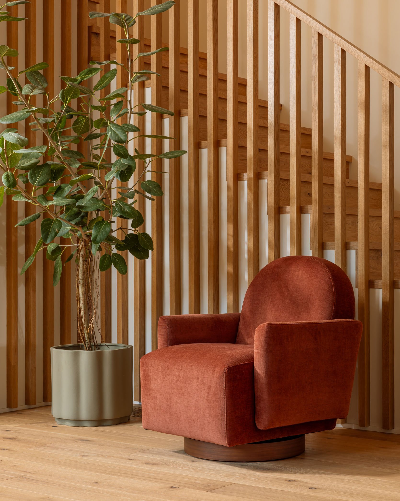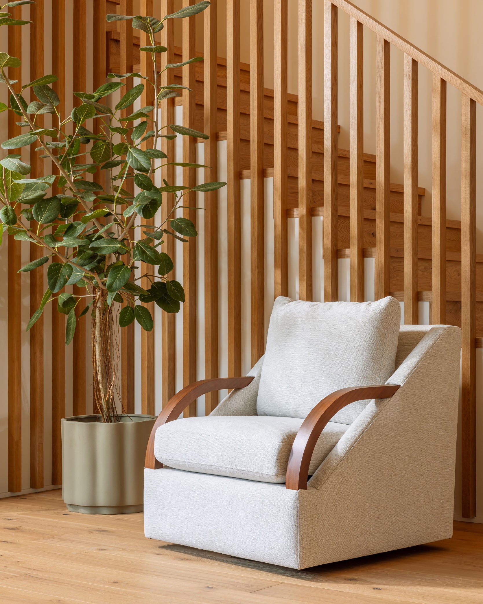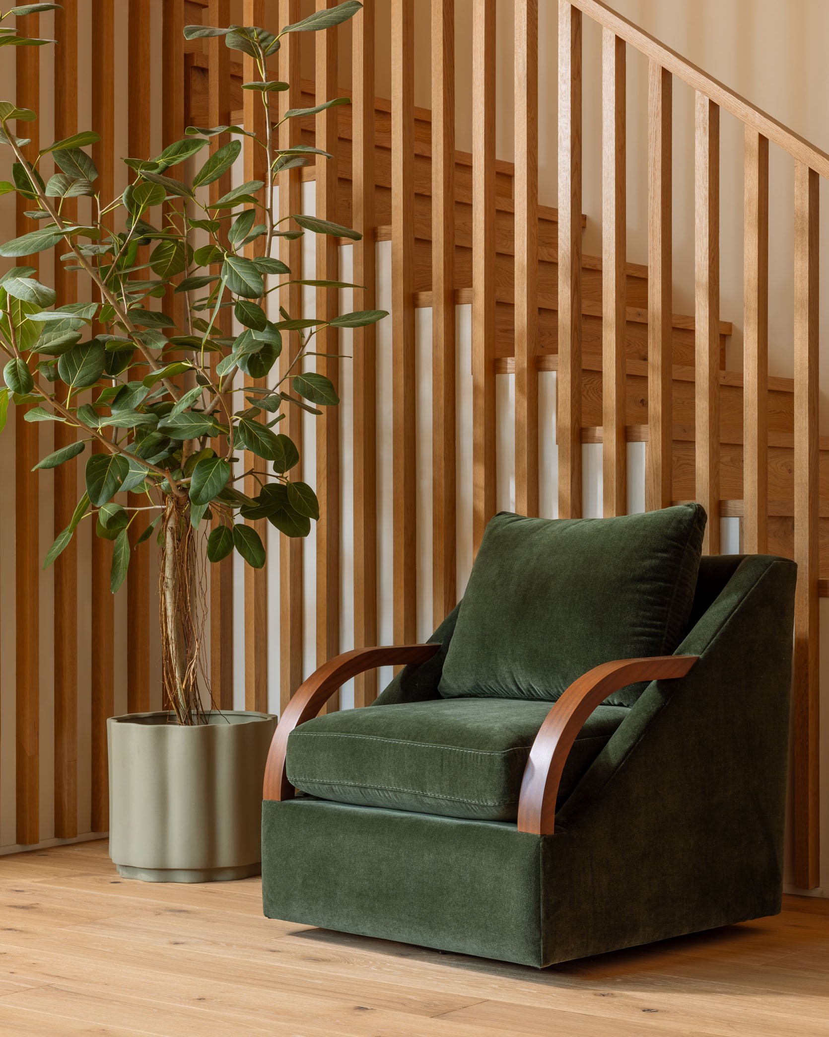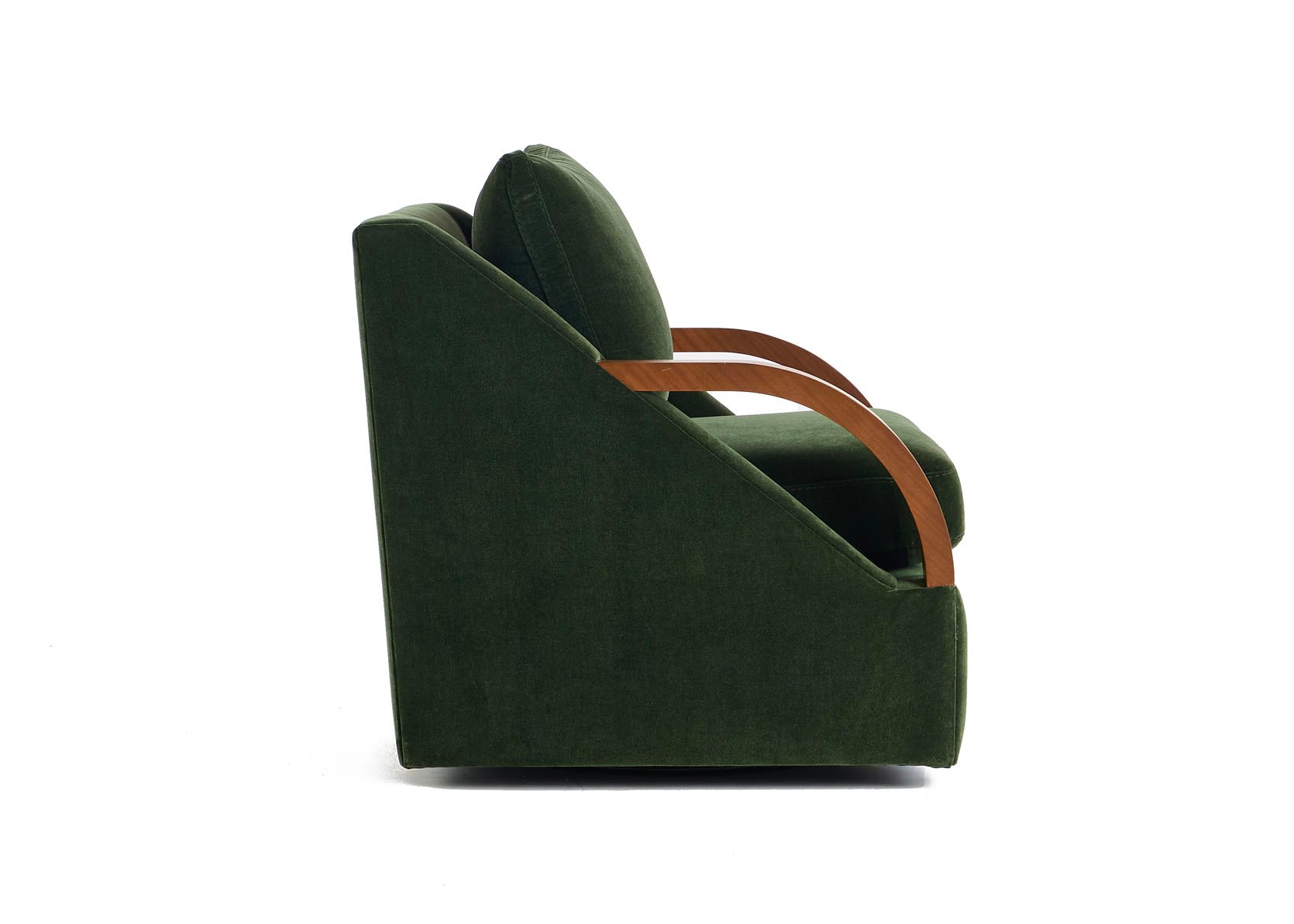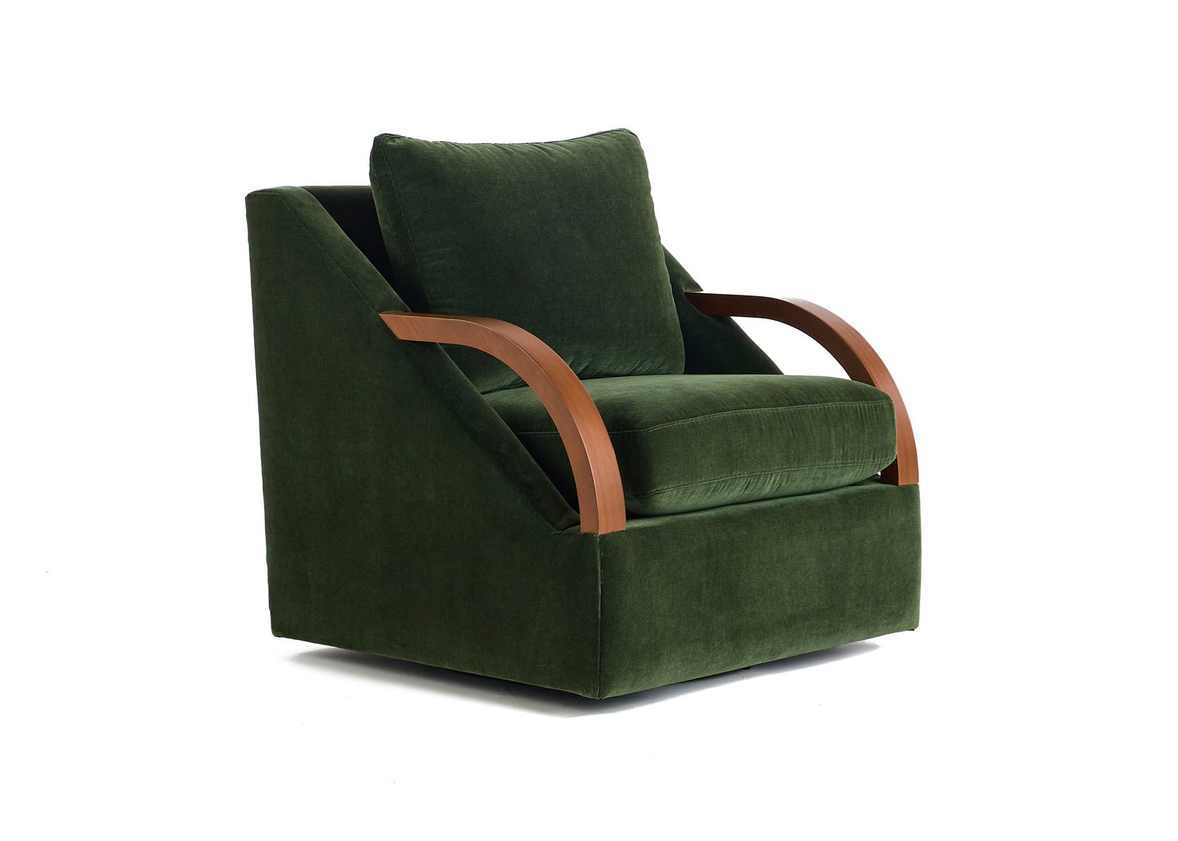 I love the Bert, especially in deeper colors, but I hate that pillow back. To my eye, that’s what makes it too casual for my living room. And there’s something about the angles of the arms. Personally, I like the contrast of the glossy wood against the velvet. I think there’s a place in your lineup for an updated club chair, and Bert is almost there. I really love how you guys focus on even the tiniest of details.