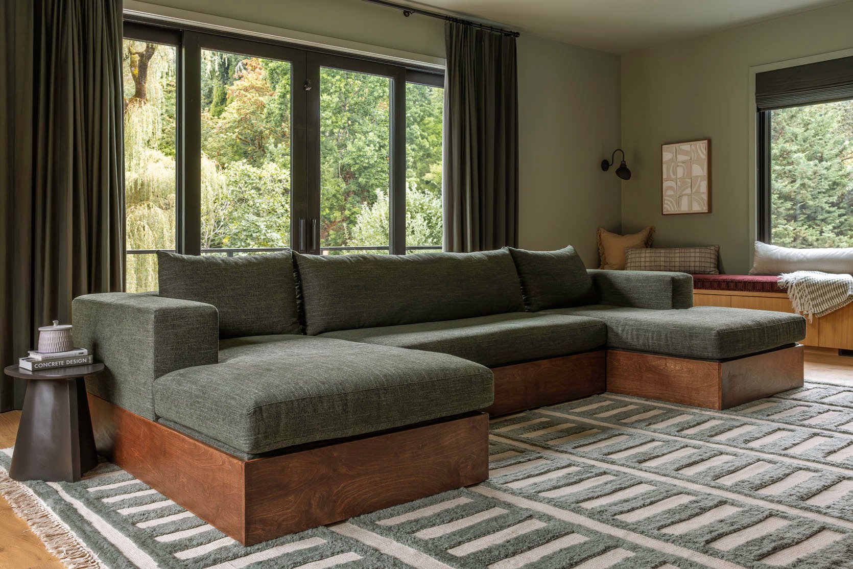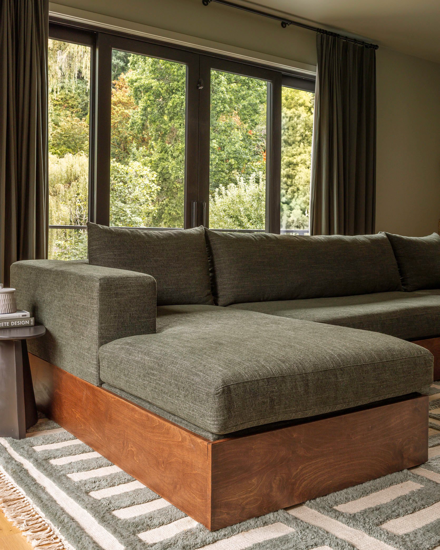 That green linen blend is really soft (for linen), and it’s incredibly plop-in-able. The first version was too bouncy, and the cushions sprang up too much when you landed – all fixed. I was truly obsessed with the comfort of them all and how they “sat”. Read the first post where I go into detail and talk through the comfort levels (some are designed more for lounging, some more for conversation/sitting).