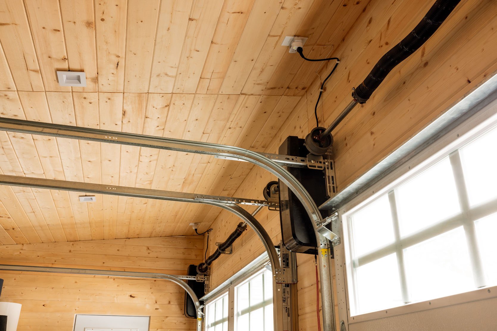 The garage doors on the inside are clean, and the windows add nice natural light. Ponderosa really nailed the execution, and they function so perfectly, quietly, and just so seamlessly (zero annoyance to me and super intuitive to figure out). I wish I had more drama to tell you, more things I wish I had done differently, or lessons I learned. But I have zero regrets or lessons on this one! WAhoo! Just the best garage doors executed perfectly.