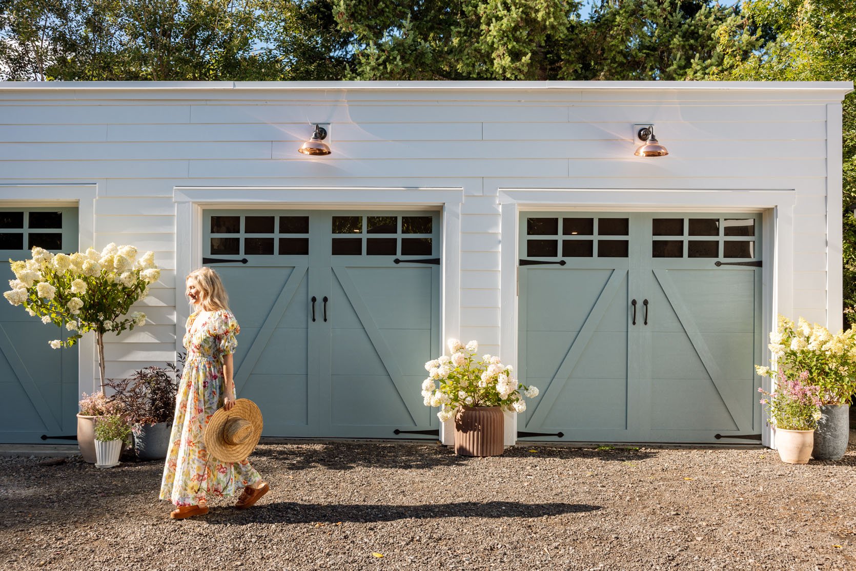 I never thought I’d be this excited to show you the prettiest garage doors ever. When we finally agreed to invest in making our garages better, our goal was to make them functional, but we had very low expectations on how beautiful they would be. Our garages aren’t on a street where neighbors can see (only friends and our trusted FedEx guys would see them), they aren’t part of our curb appeal (not attached to the house), so our goal was “better and basic” (along with “dry, not disgusting, less spiders and mold,” and ultimately way less dangerous). But today we are talking specifically about the doors – what we now call the best garage doors ever. And because I clearly have a disorder where I can’t do anything simply or “without obsessing about how pretty it could be,” therefore I ended up choosing these pretty doors that make me so happy – far happier than predicted.