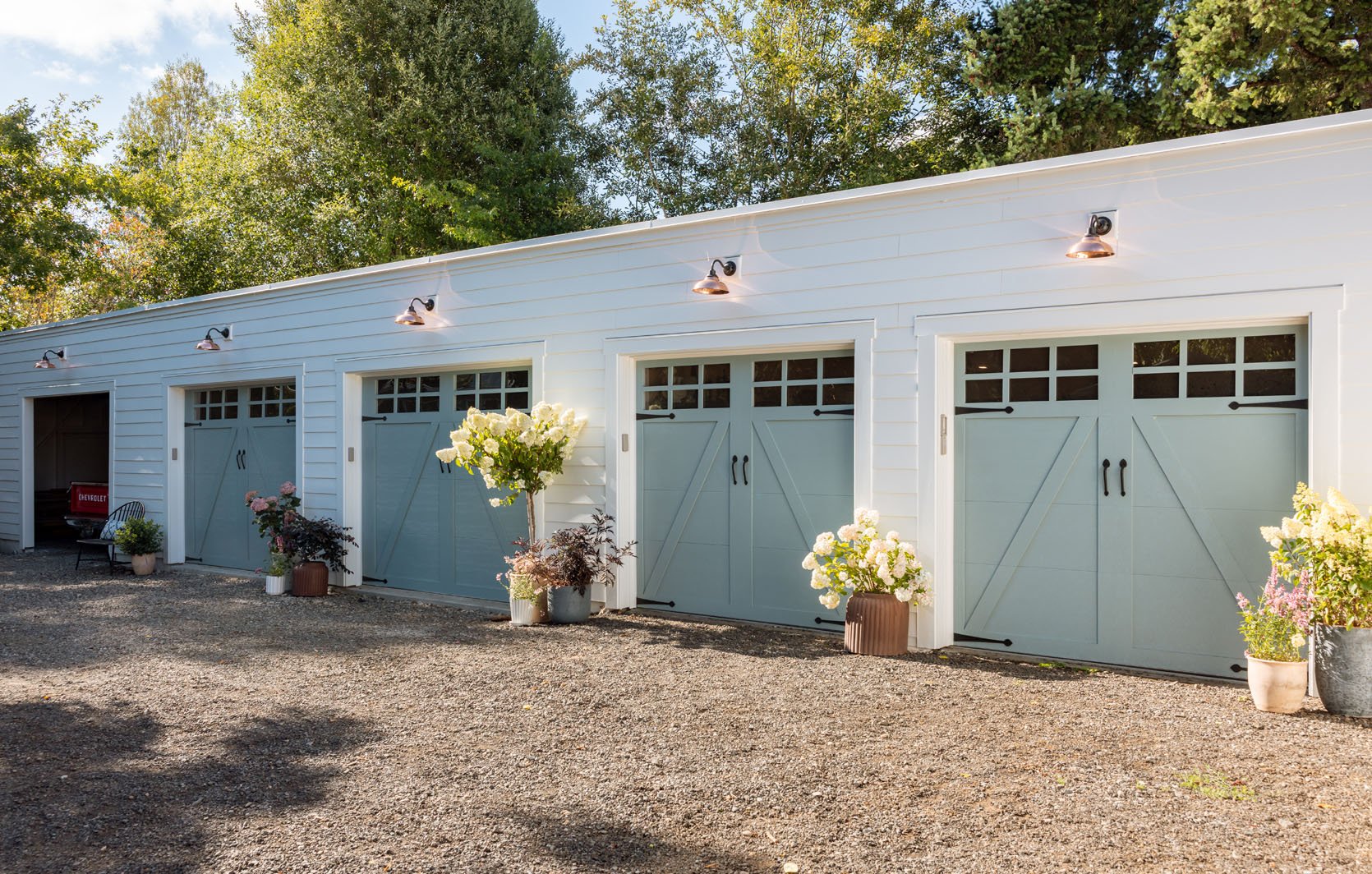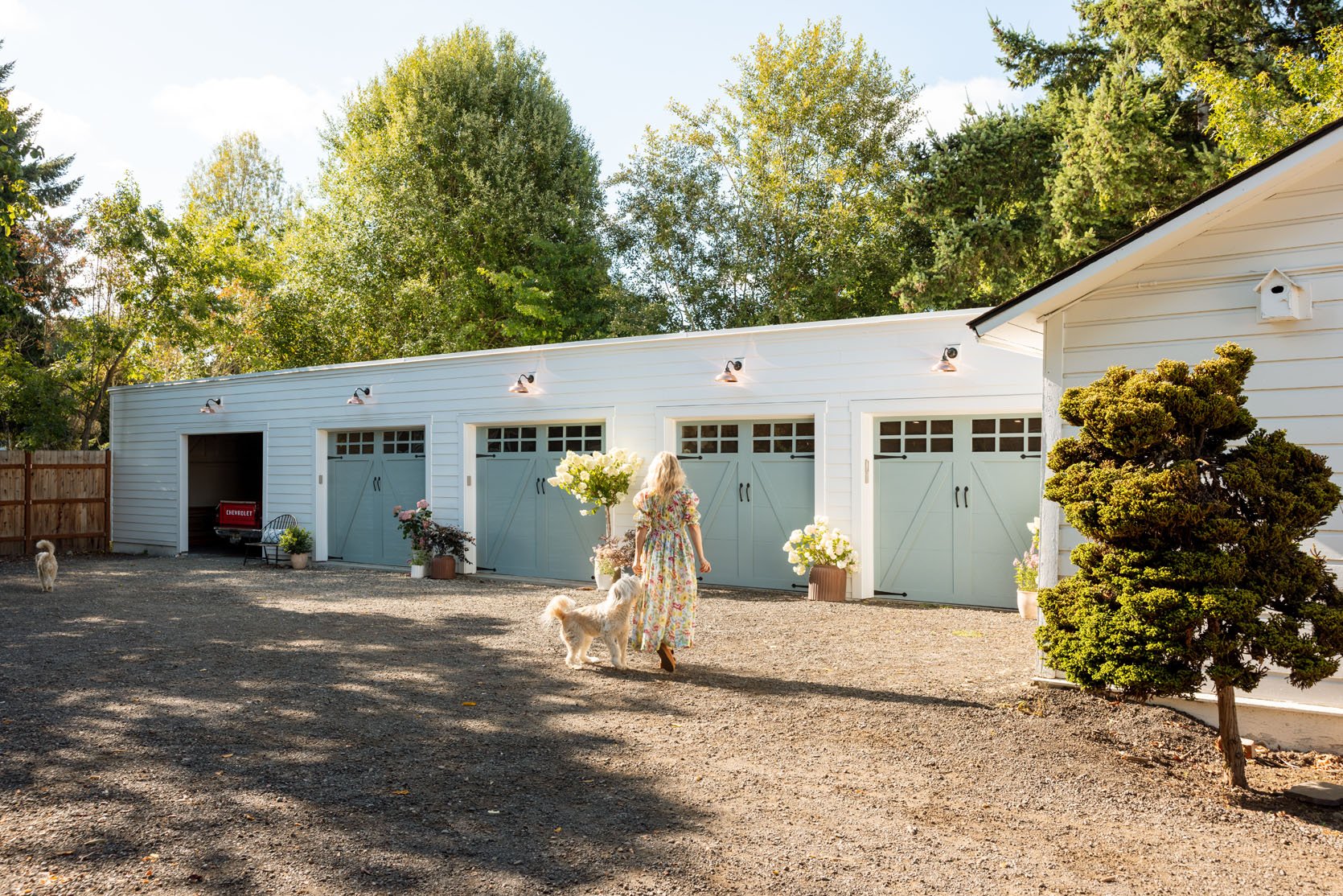 I received multiple word-of-mouth recommendations for Ponderosa, a local (and experienced) garage door installer. I reached out and really loved their customer service, speed, communication style (fast and personal with easy text notifications), and variety of great door products. After telling Ken, the owner, that I wanted carriage-style doors, he suggested we work with a company called Clopay because they are meant to be the best garage doors, with a massive variety of customization and styles (ours are vintage style, but they certainly have very contemporary and modern as well). They range in price, as expected, and ours are more than average, but for our style of property (more historic and antique), we felt we needed to pick something that really aligned with the property. Turns out even though I promised myself “I didn’t care”, more focused on function and speed – turns out I always care, always.