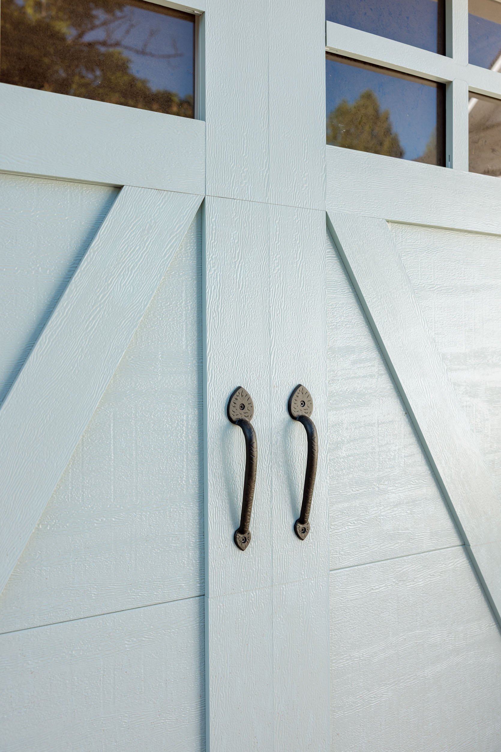 They had a lot of options for all of these elements, both in style and color (we chose the spear style strap). I literally couldn’t be happier with what we chose and how they turned out – they add such charm and are super high quality. And there is a slightly “faux” wood grain finish to the garage doors that adds a really nice texture, which I was SO relieved looked fantastic in person (I’m always nervous about faux anything, but this is not cheesy, just subtle and nice).