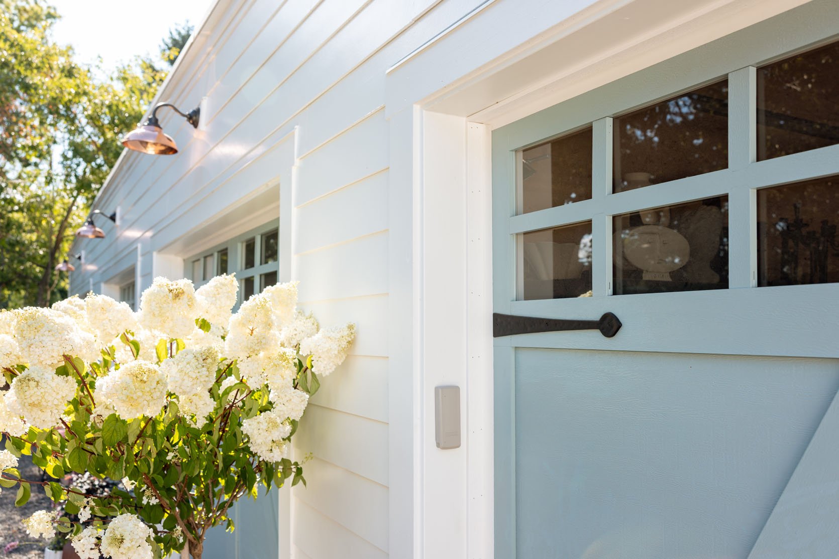 When they arrived, I was oddly delighted by these garage doors, and I remain so happy every time my eye lands on them. The happy blue, the windows, the decorative strappings, and the super smooth, quiet function – truly the best garage doors. I feel extremely lucky and grateful. A huge thanks to Ponderosa for their excellent execution on our doors. Thank you, Clopay, for partnering on these beautiful garage doors, and Afore Construction for doing all the prep work and helping us fix up the garages. Interior reveal coming soon, I promise.