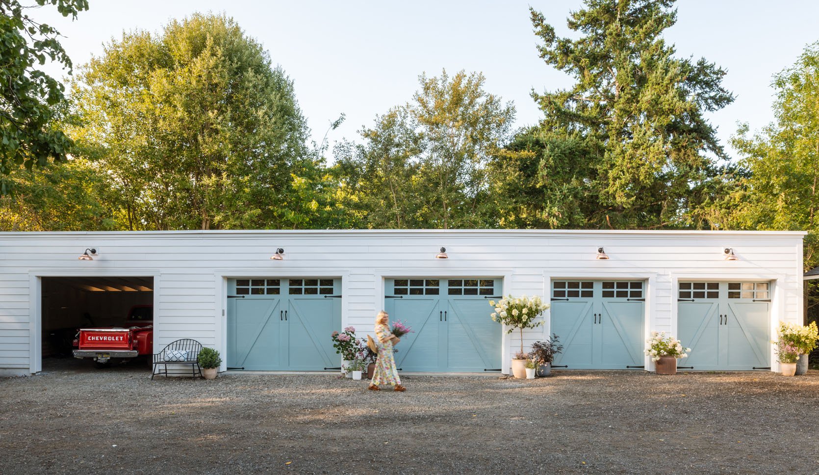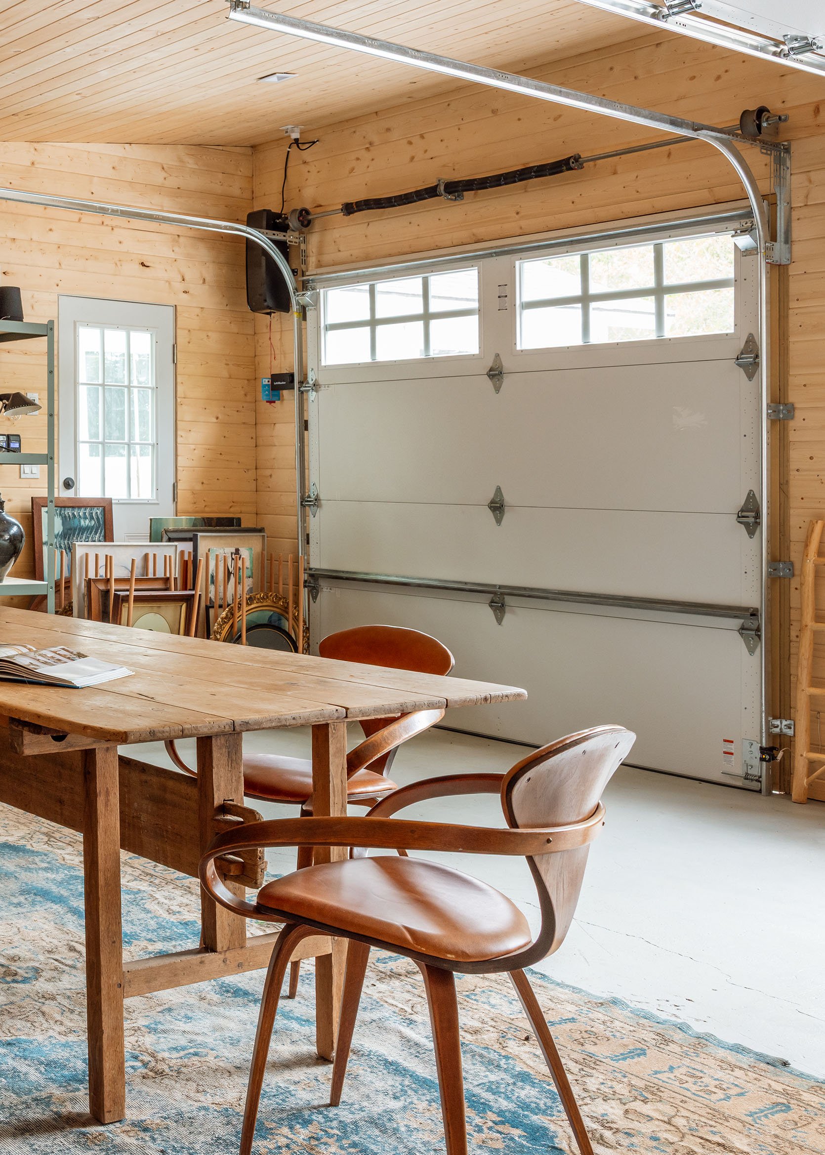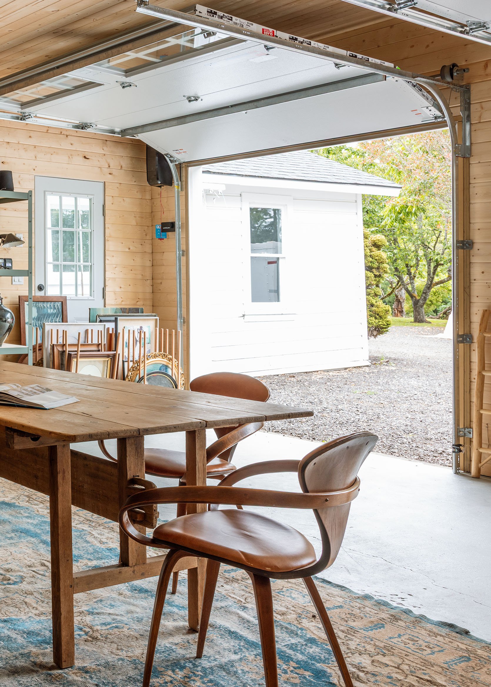 We left the last bay open as a carport. It was the original sheep’s barn and was never a garage. But we did this mostly for budget purposes. We saved on not having electrical, simple framing, finishes, and no cement floor (just gravel). It’s super bare bones, which we are fine with (we almost just tore it down, but my brother convinced us to keep it, just not really invest in it). Ultimately, we didn’t need a fifth garage, just a covered carport for Brian’s vintage truck and a great space for messy painting projects. And heck, a future owner might have a boat or something they want to store here (no intent on a future owner, but we always consider all the possibilities).
