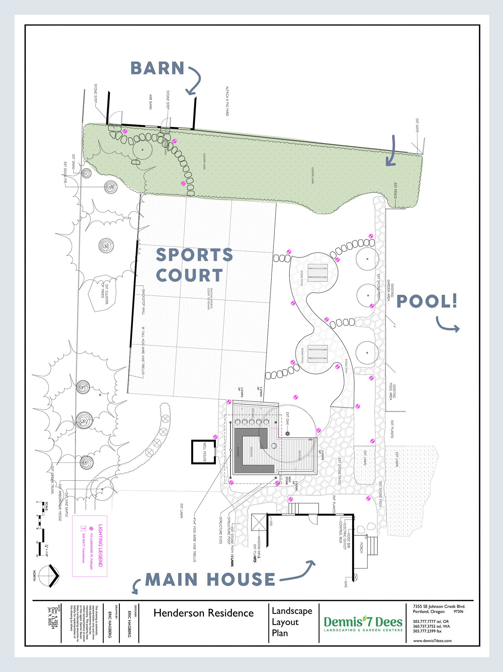 As you know for stage 2 of our landscaping, we hired Dennis’ 7 Dees to redesign the area under the old sport court and to make the area by the barn and paddock simply better (and truly couldn’t have been happier). Eric sent through the design plan below: